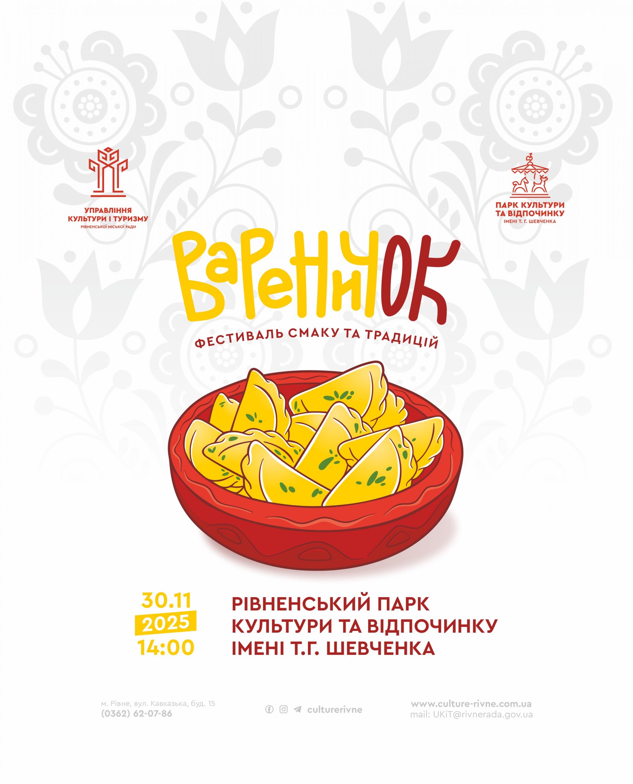30 листопада, з 14:00 – 20:00, у Парку культури та відпочинку імені Т.Г.Шевченка відбудеться фестиваль смаку та традицій “ВареничОК”. 30