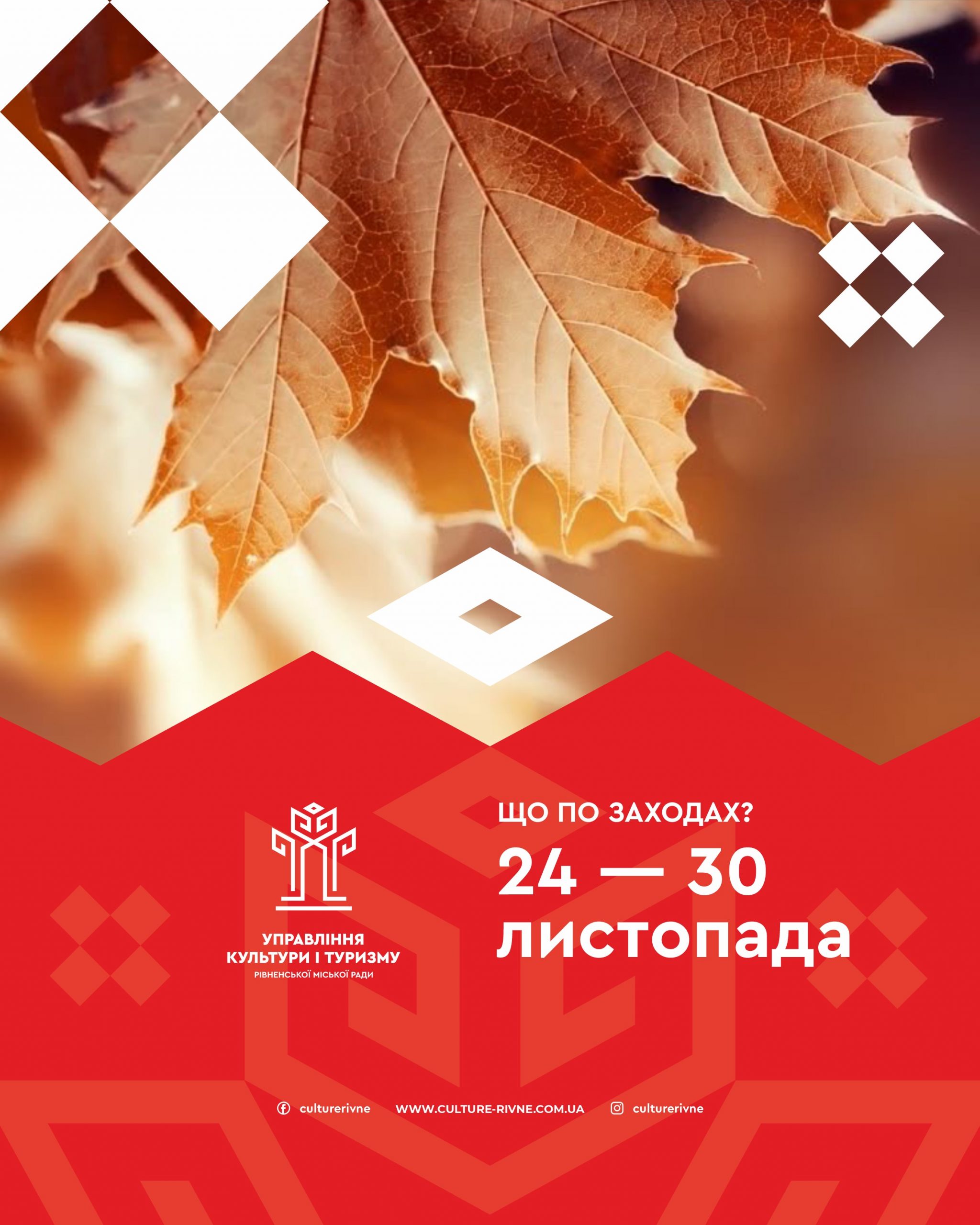 Запрошуємо рівнян та гостей міста на загальноміські заходи, які будуть відбуватися у Рівненській міській територіальній громаді на період з 24