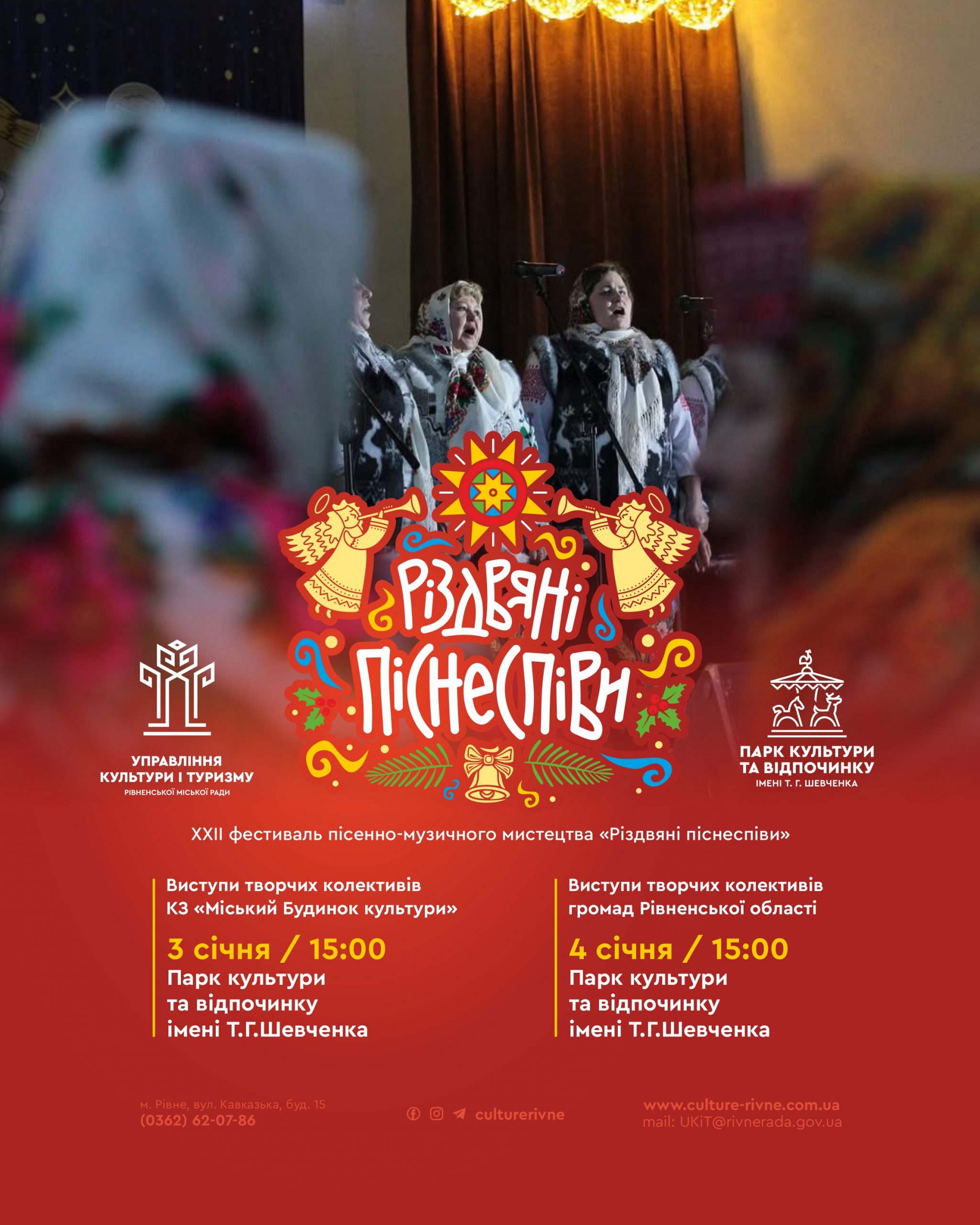 Програма ХХІІ фестивалю пісенно-музичного мистецтва Різдво — час світла, тепла та спільної радості. У Рівному знову лунатимуть колядки, щедрівки та
