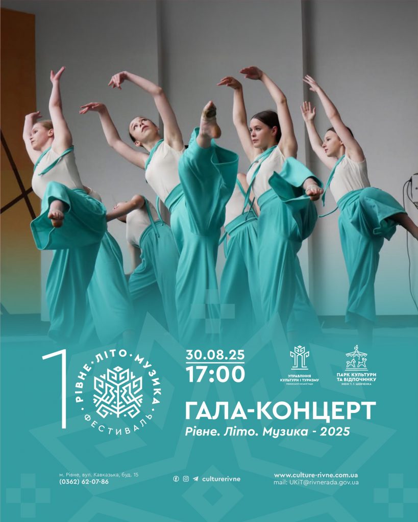Запрошуємо на гала-концерт X загальноміського мистецького фестивалю “Рівне. Літо. Музика” , який відбудеться 30 серпня 2025 року у Парку культури та відпочинку імені Т. Г. Шевченка!