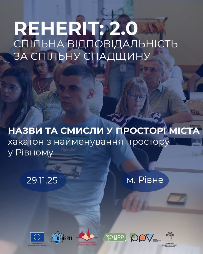 “REHERIT 2.0: Спільна відповідальність за спільну спадщину” реалізується Центр міської історії / Center for Urban History та Центром “Регіональний розвиток” Агенція економічного розвитку PPV за фінансової підтримки Європейського Союзу.