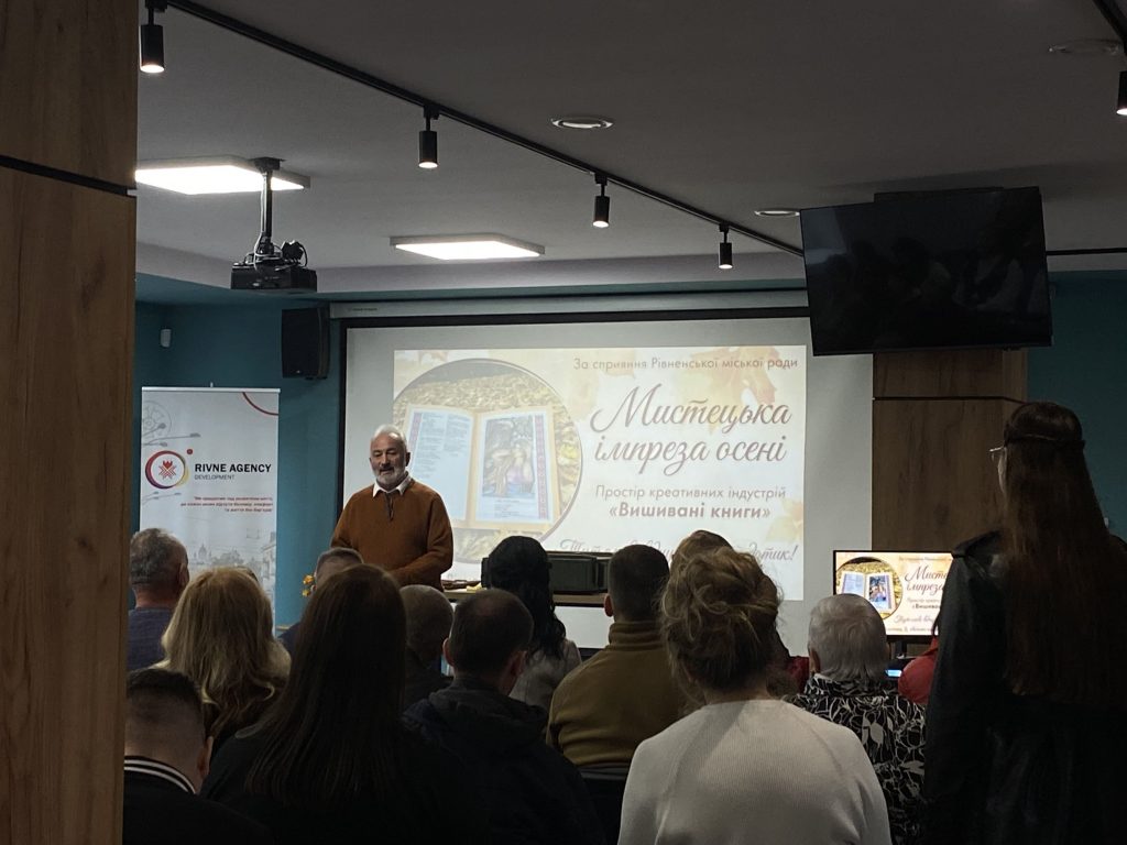 Під час відкриття гості мали нагоду побачити унікальну колекцію вишиваних книг, створених рівненською майстринею народної творчості, письменницею та засновницею бренду «Креативна книга» Оленою Медведєвою.