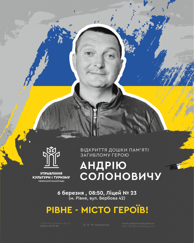 6 березня, о 8:50, на фасаді ліцею №23 відбудеться відкриття дошки пам’яті загиблому Герою Андрію Солоновичу.