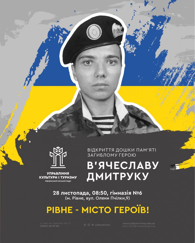 28 грудня, о 8:50, на фасаді гімназії №6 відбудеться відкриття дошки пам’яті загиблому Герою В’ячеславу Дмитруку.