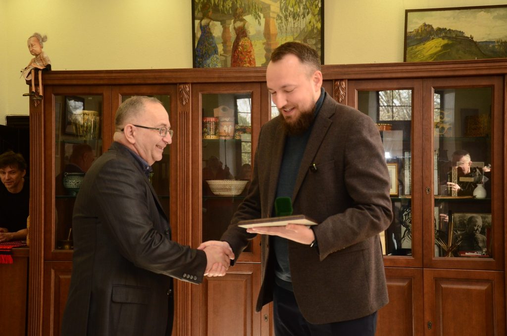 Заступник міського голови Євгеній Іванішин урочисто вручив диплом та нагрудний знак лауреату – Володимиру Стасюку.