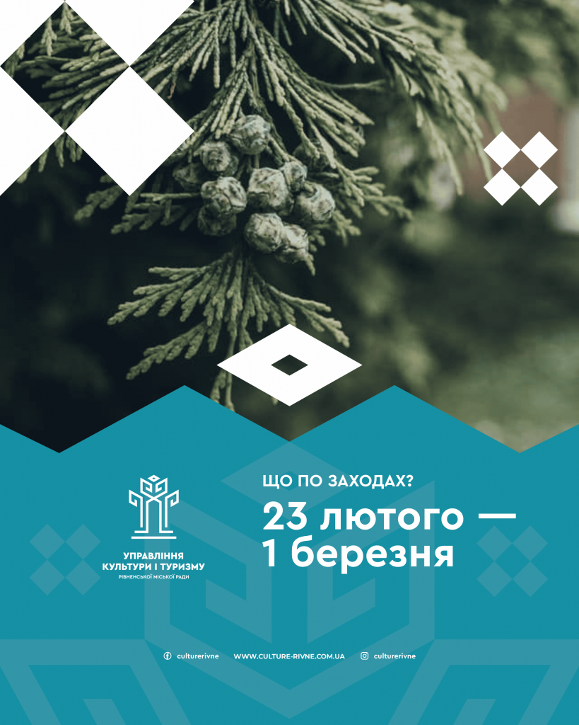 Запрошуємо рівнян та гостей міста на загальноміські заходи, які будуть відбуватися у Рівненській міській територіальній громаді на період з 23 лютого-1 березня. Протягом цього тижня на вас чекає безліч цікавих подій, заходів, майстер-класів, виставок, тощо. Бажаємо аби цей робочий тиждень у вас пройшов яскраво і впевнені, що з цим допоможуть наші загальноміські заходи.